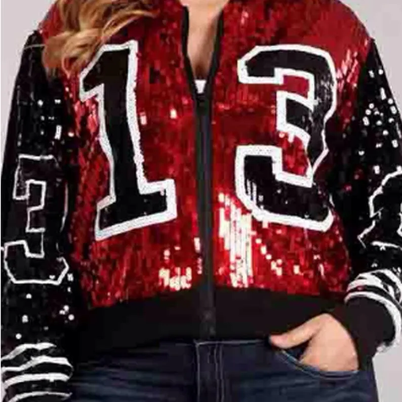 New Greek Fashion lady streetwear coat 13 sequins zip up long sleeve sporty bat sleeved Sorority jacket